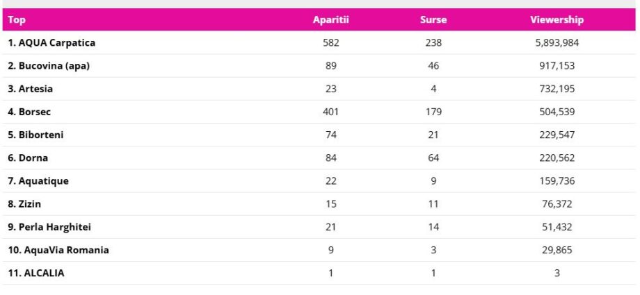 AQUA Carpatica, lider în topul celor mai vizibile branduri de apă în online și pe Facebook în luna februarie 2026